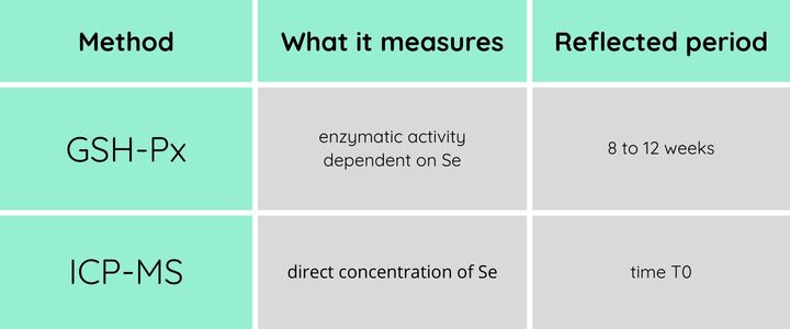 - ICP-MS: precise assessment of selenium status at the time of sampling, when the matrix is blood
